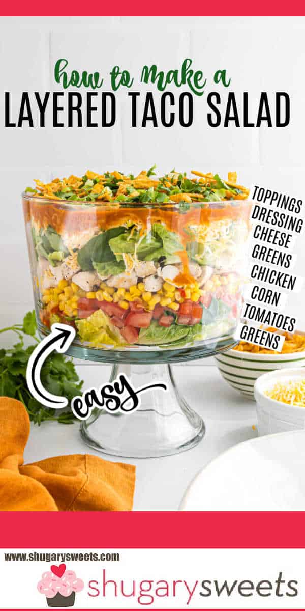 The best taco salad is a Layered Chicken Taco Salad! All the Tex-Mex flavor you love in one satisfying, fresh salad recipe.
