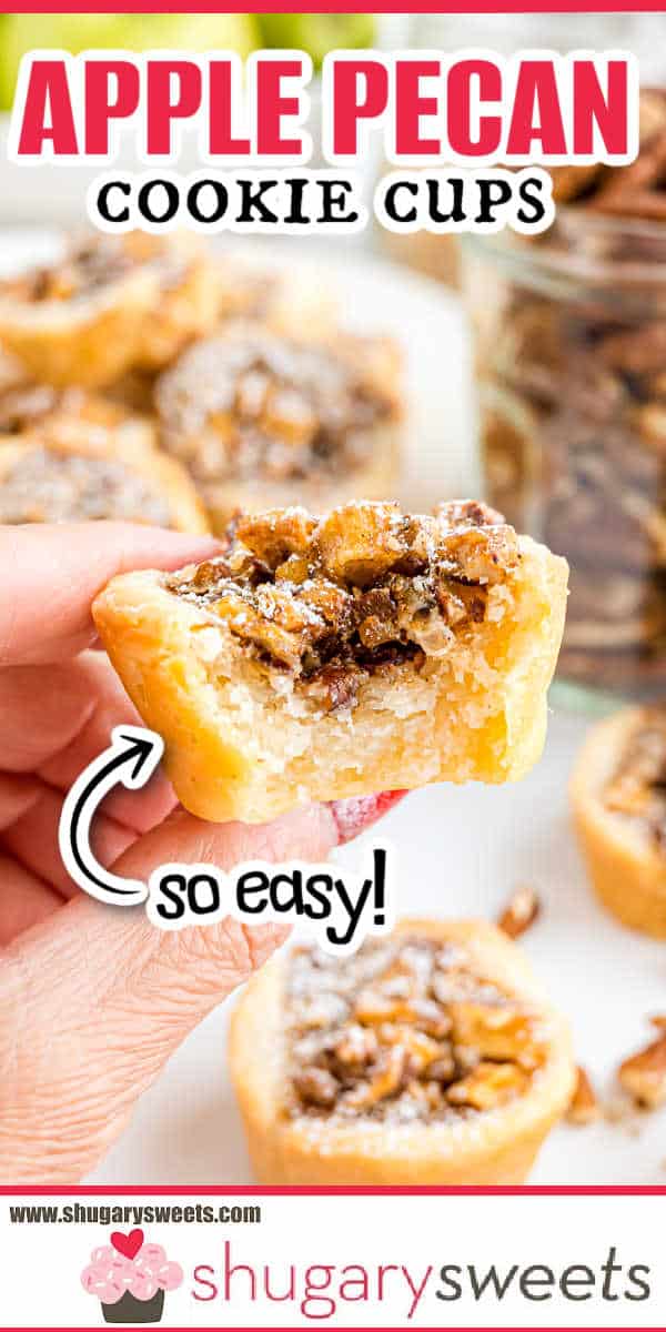 These apple cookie cups are based off my family’s favorite pecan tassies recipe! They taste like mini apple pies in a cookie!
