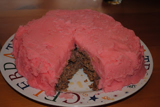 So on to the dinner. I try to do something every year. This year was the meatloaf and mashed potato cake. However, that was dessert. So first I had to serve dinner. Chicken nuggets.