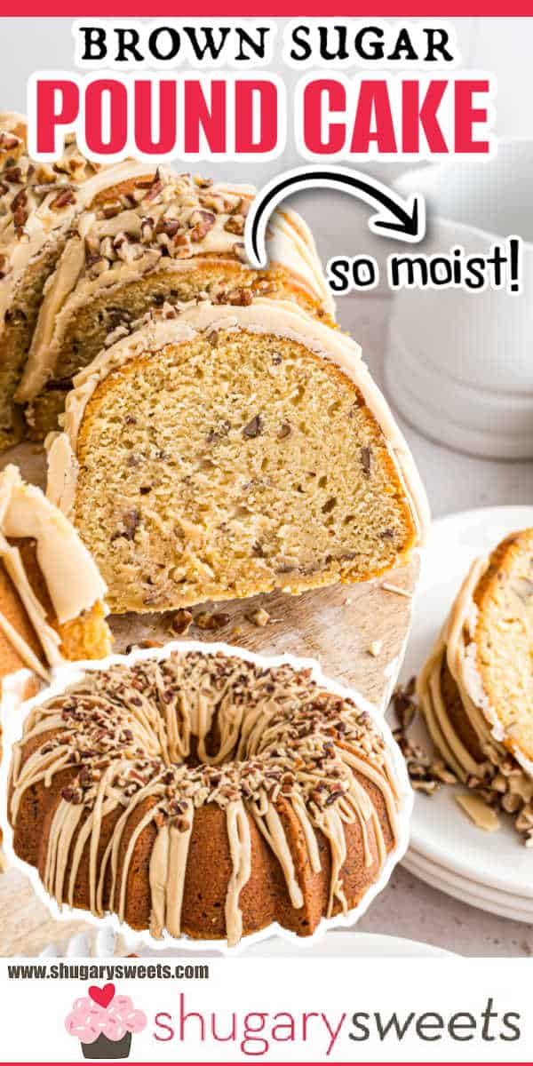Moist pound cake with a sweet buttery glaze puts a delicious spin on an old classic. With crunchy pecans on top and rich molasses flavor, this Brown Sugar Pound Cake recipe is as easy as it is delicious!
