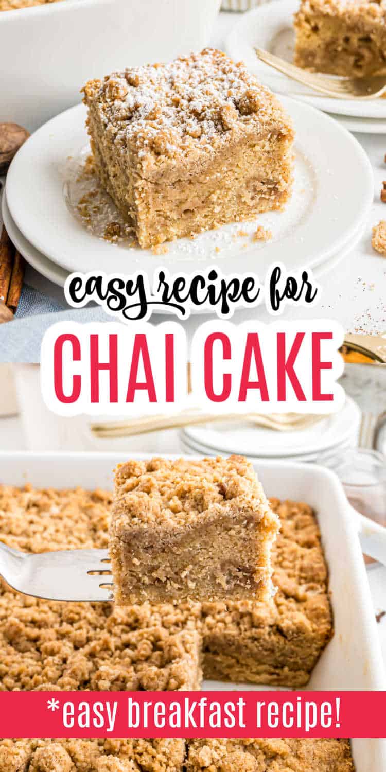 This Chai Spice Cake is soft, warmly spiced, and topped with a buttery streusel. This easy homemade breakfast coffee cake is perfectly flavored and disappears fast.