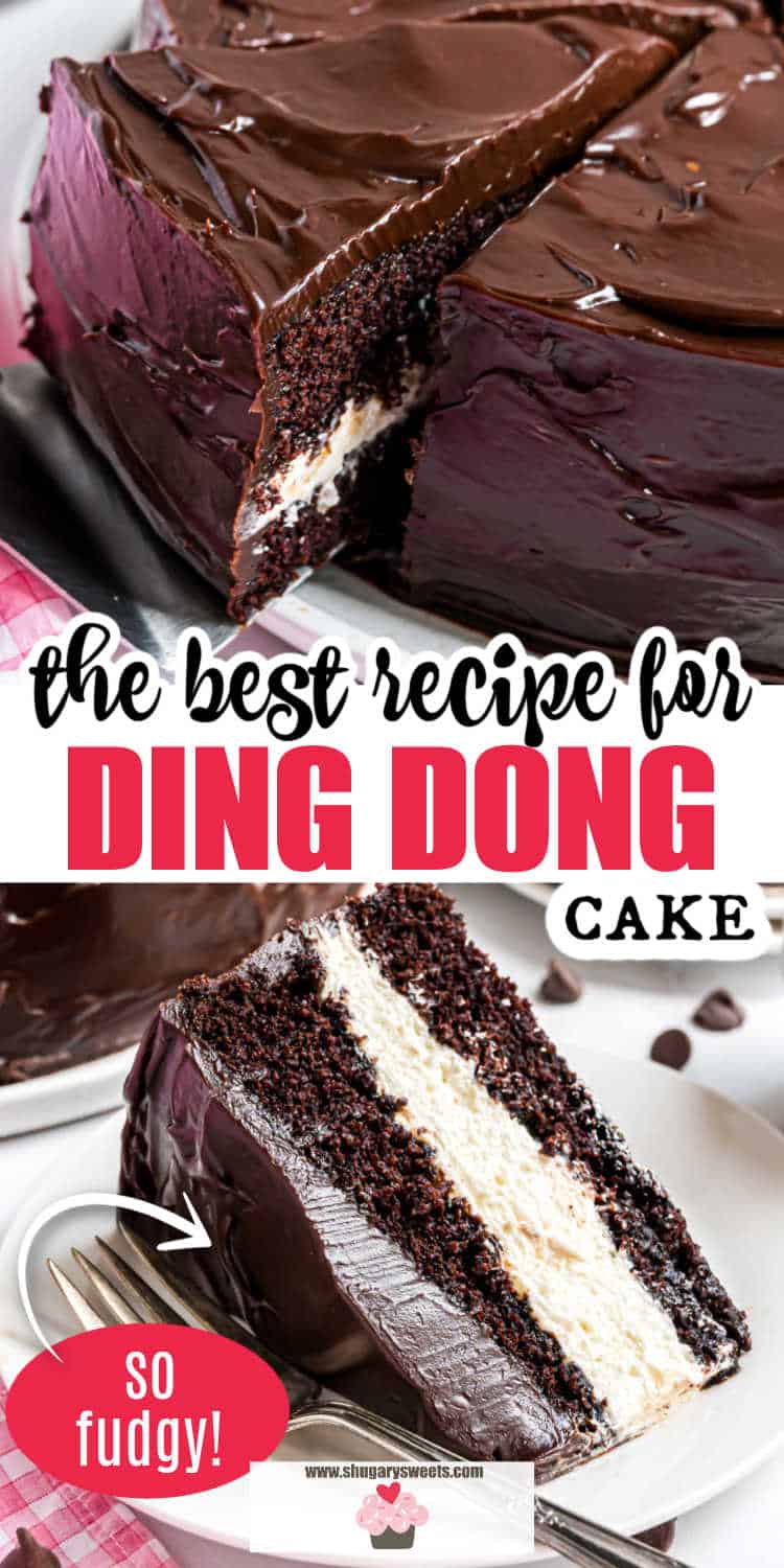 This Copycat Hostess Ding Dong Cake recipe is a rich, decadent chocolate cake, with a creamy filling and chocolate ganache spread over the top! So easy, you’ll love it!