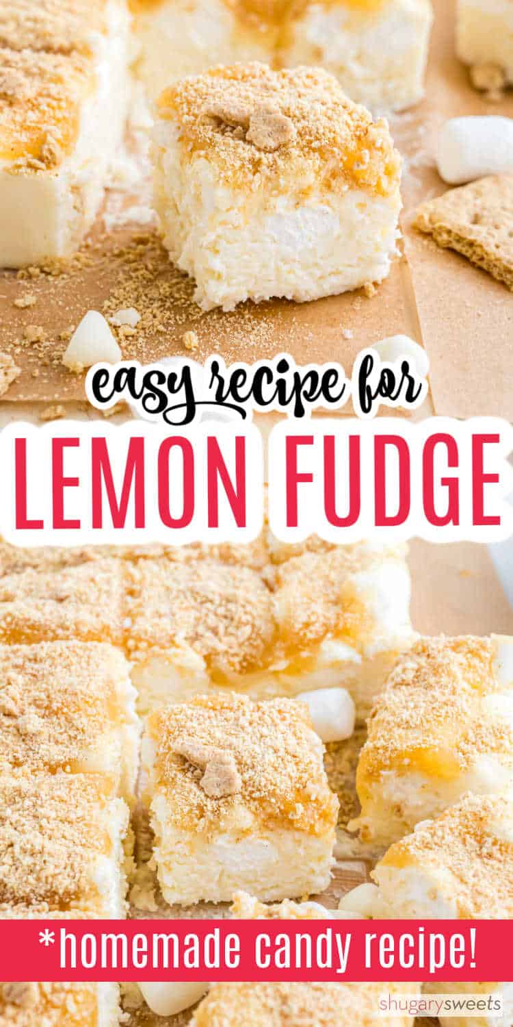 Lemon Meringue Pie Fudge has all the zesty sweetness of a lemon meringue pie in bite-sized squares of fudge. This easy lemon fudge recipe brings layers of marshmallow “meringue” with homemade lemon curd.