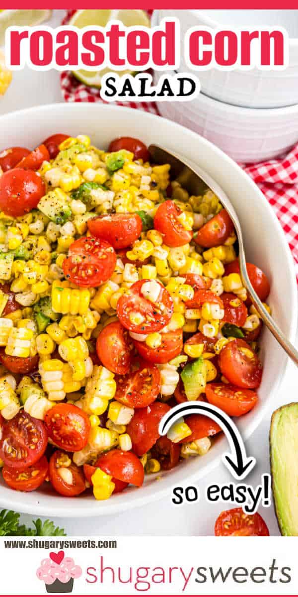 This Roasted Corn Salad is made with grilled sweet corn, juicy tomatoes, creamy avocado and a homemade honey lime vinaigrette. It’s simple, fresh, and exactly what you want next to grilled chicken!