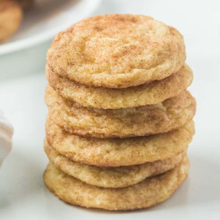 These soft chocolate chip cookies stay soft for DAYS, and I wanted that same chewy soft texture in today’s homemade snickerdoodle cookies.