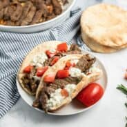 Toast or warm the pita for a few minutes in the oven before adding the beef for best taste. I always use store bought pita here but heating the bread makes everything taste so much fresher!