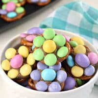 Make these adorable Flower Pretzel Candy Bites this Easter! A salty sweet homemade Easter candy that's full of color and cheer, just in time for spring.