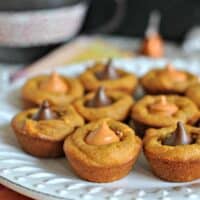 Other Hershey’s Kiss Flavors: Dark chocolate kisses or white chocolate hugs would be wonderful in the Pumpkin Blossoms too! Or Hazelnut. Or caramel. Okay, basically any kind of kiss will taste amazing here (except peppermint. . . I wouldn’t make these with peppermint kisses).