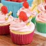 You’ll love the simplicity of these raspberry lemonade cupcakes. A box cake mix and fresh homemade raspberry buttercream frosting make this recipe easy to make and delicious to eat. A fresh raspberry tops the cupcake for extra fresh goodness!