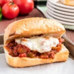 When ready to serve, scoop meat into a french roll with a slice of provolone cheese. If you want it toasted, heat your french roll with cheese for 5-6 minutes in a 400 degree oven.