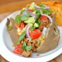 To assemble, slice potatoes. Add ground turkey and cheese. Top with desired topping. ENJOY.